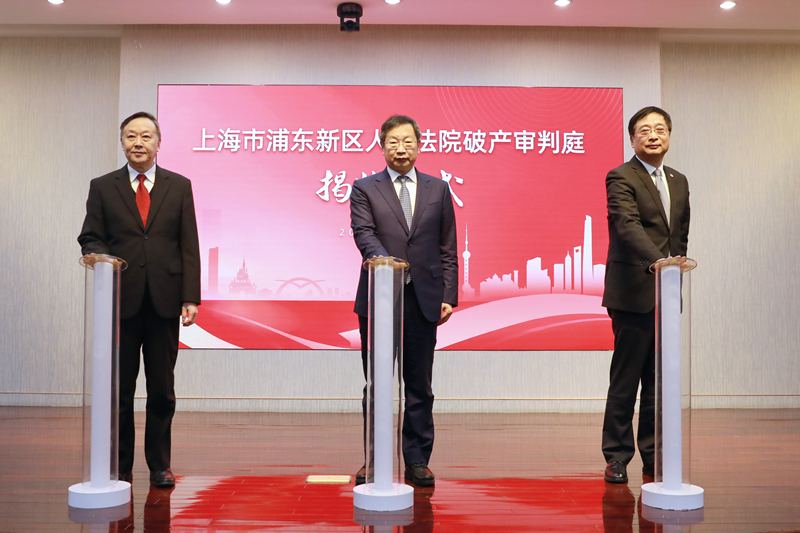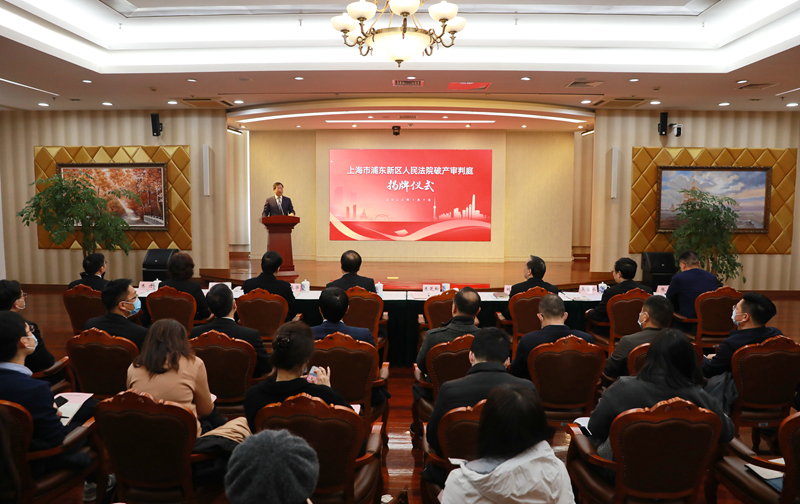 为进一步贯彻《上海市浦东新区完善市场化法治化企业破产制度若干规定》,助推打造法治化营商环境,护航浦东打造社会主义现代化建设引领区,1月7日上午,浦东新区法院举行破产审判庭揭牌活动,市委常委、浦东新区区委书记朱芝松,市人大常委会副主任莫负春,市高院党组书记、院长刘晓云共同为浦东新区法院破产审判庭揭牌。市高院党组成员、副院长吴金水宣读了最高人民法院和上海市委编委相关批复。揭牌活动由浦东新区法院党组书记、代理院长朱丹主持,市人大、市高院、浦东新区相关单位部门负责人及部分媒体代表参加活动。