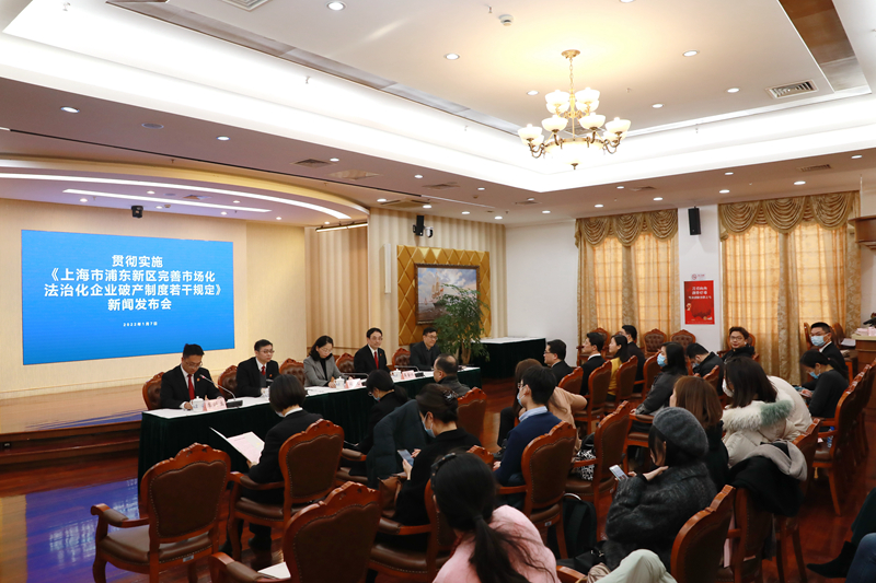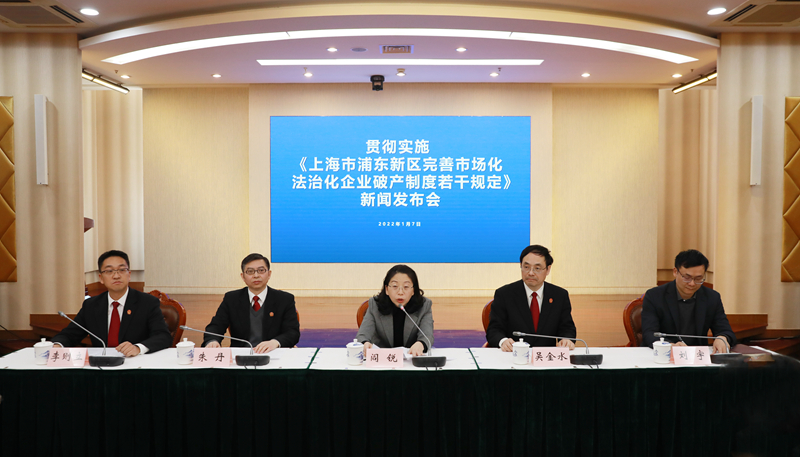揭牌活动后,市高院在浦东新区法院召开贯彻落实《上海市浦东新区完善市场化法治化企业破产制度若干规定》新闻发布会。会上,市人大常委会法工委主任闫锐对制定《若干规定》的背景意义及创新内容进行了解读。吴金水副院长介绍了上海法院为贯彻实施《若干规定》从管辖调整、机构设置、制度配套、技术支持等多方面所做的准备工作。浦东新区法院、浦东新区发改委分别就相关问题回答了记者提问。