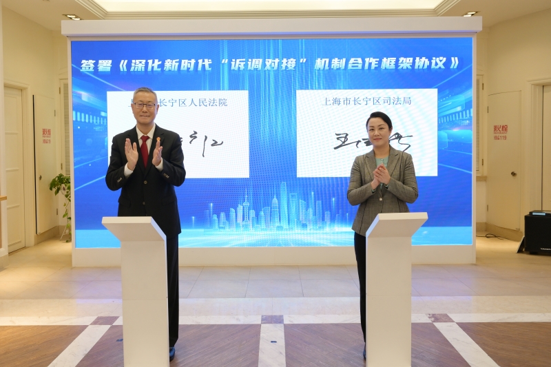 会上,长宁区人民法院与长宁区司法局签署进一步深化诉调对接机制的合作框架协议。
